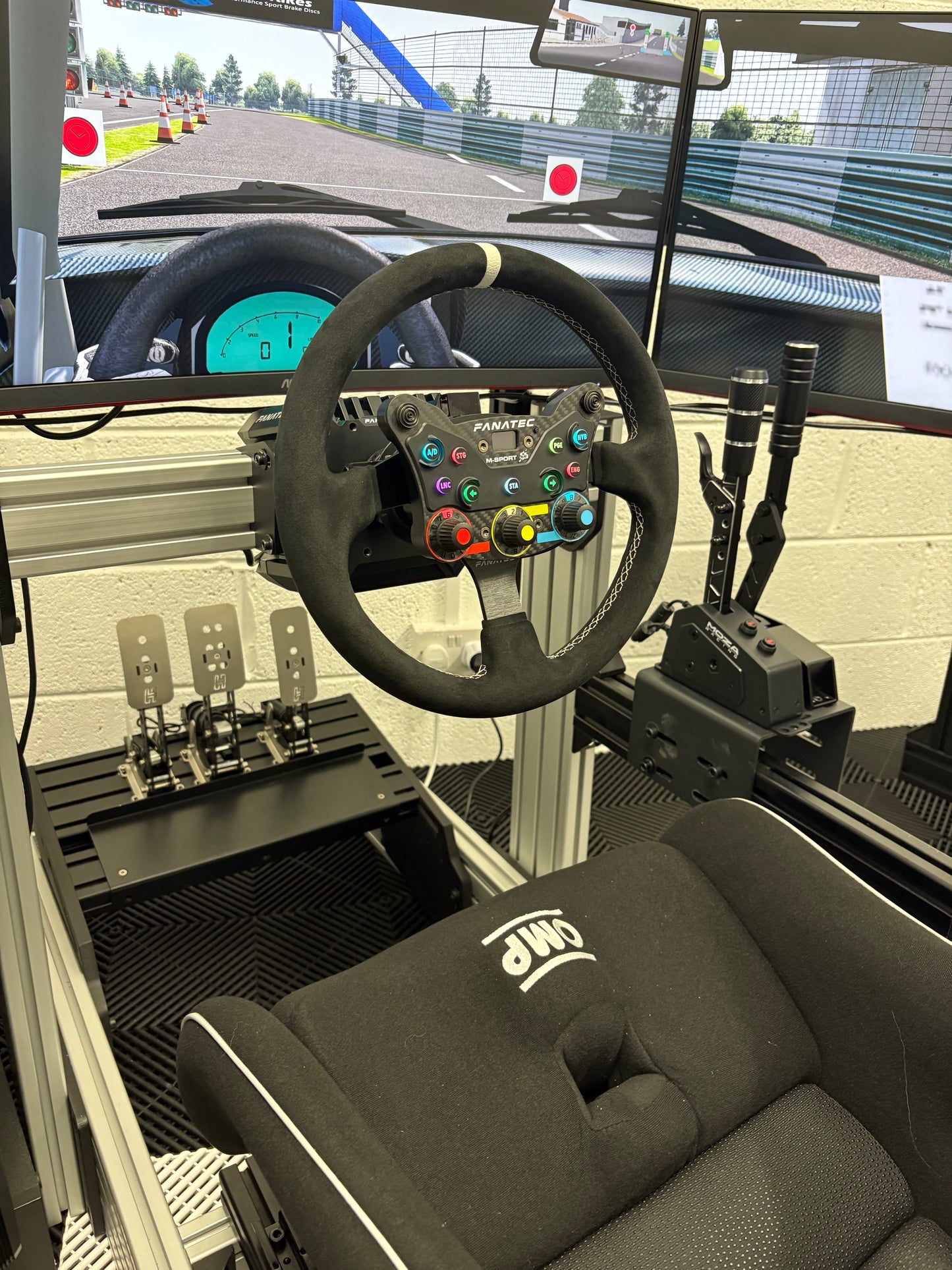 The centerpiece of control is a Rally1 WRC-spec steering wheel, complete with paddle shifters, a button module from the official M-Sport World Rally Team, and a built-in LCD gear indicator. It's the same level of hardware used by rally professionals on the world stage.