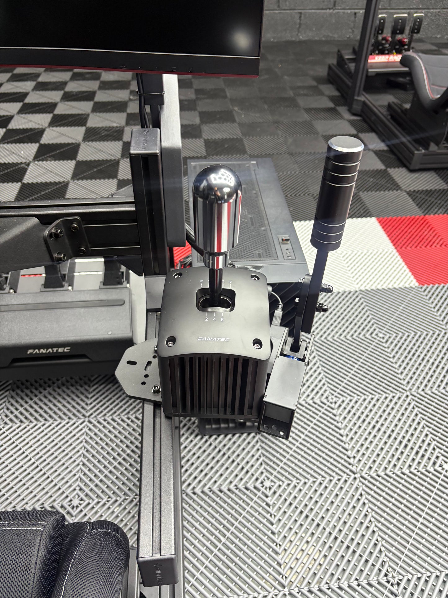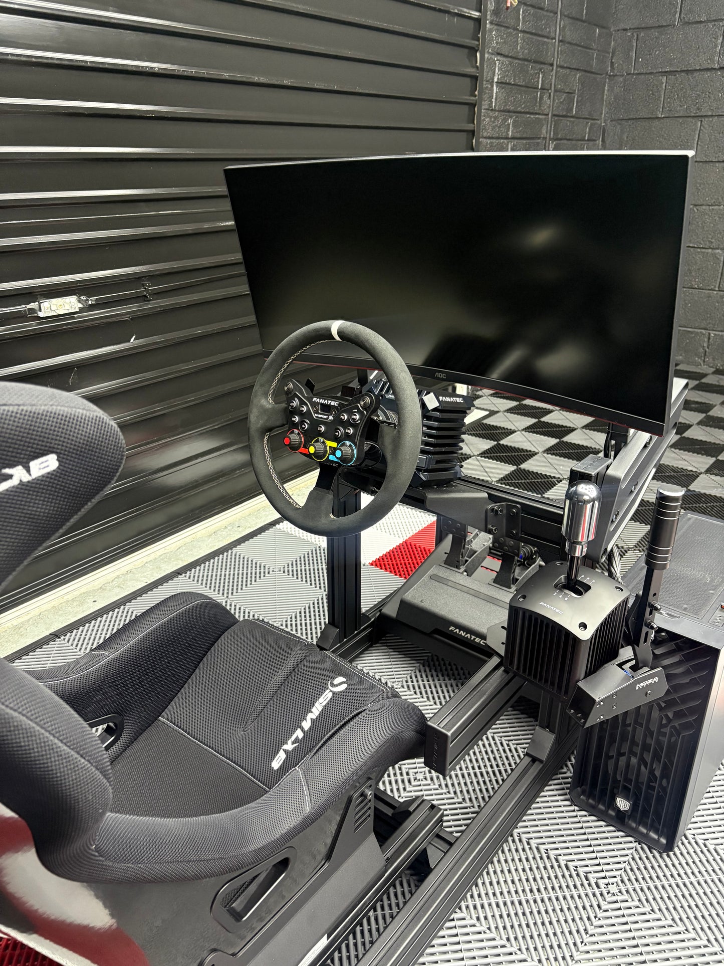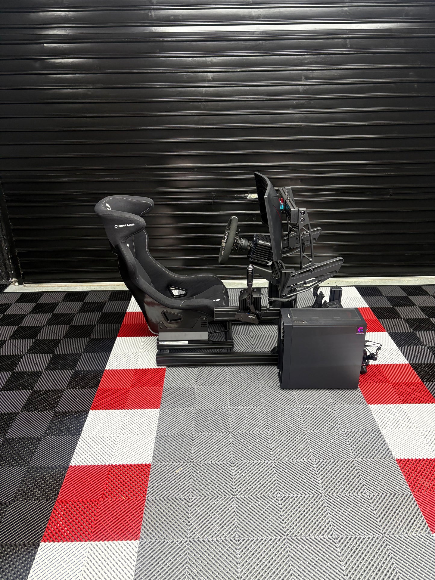 Infinite adjustability for pedals, steering wheel height/angle/distance, and the racing seat (mounted on a smooth slider rail).